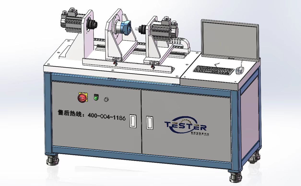1.該試驗臺是由加載系統、轉動系統、液晶顯示器以及裝夾機構等組成,主要用于檢測減速器的背隙(或空程)、啟動力矩、效率和空載等功能。 該機采用臥式結構,全數字式數據采集控制系統,機架、夾具等組成,具有加載均勻、穩定、無沖擊現象、數據采集控制準確的特點。